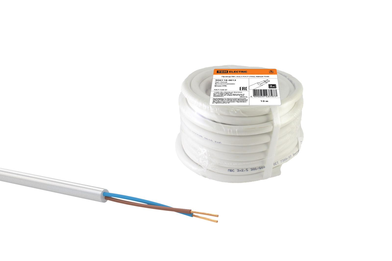 Наименование: Провод ПВС 2х2,5 ГОСТ (10м), белый TDM