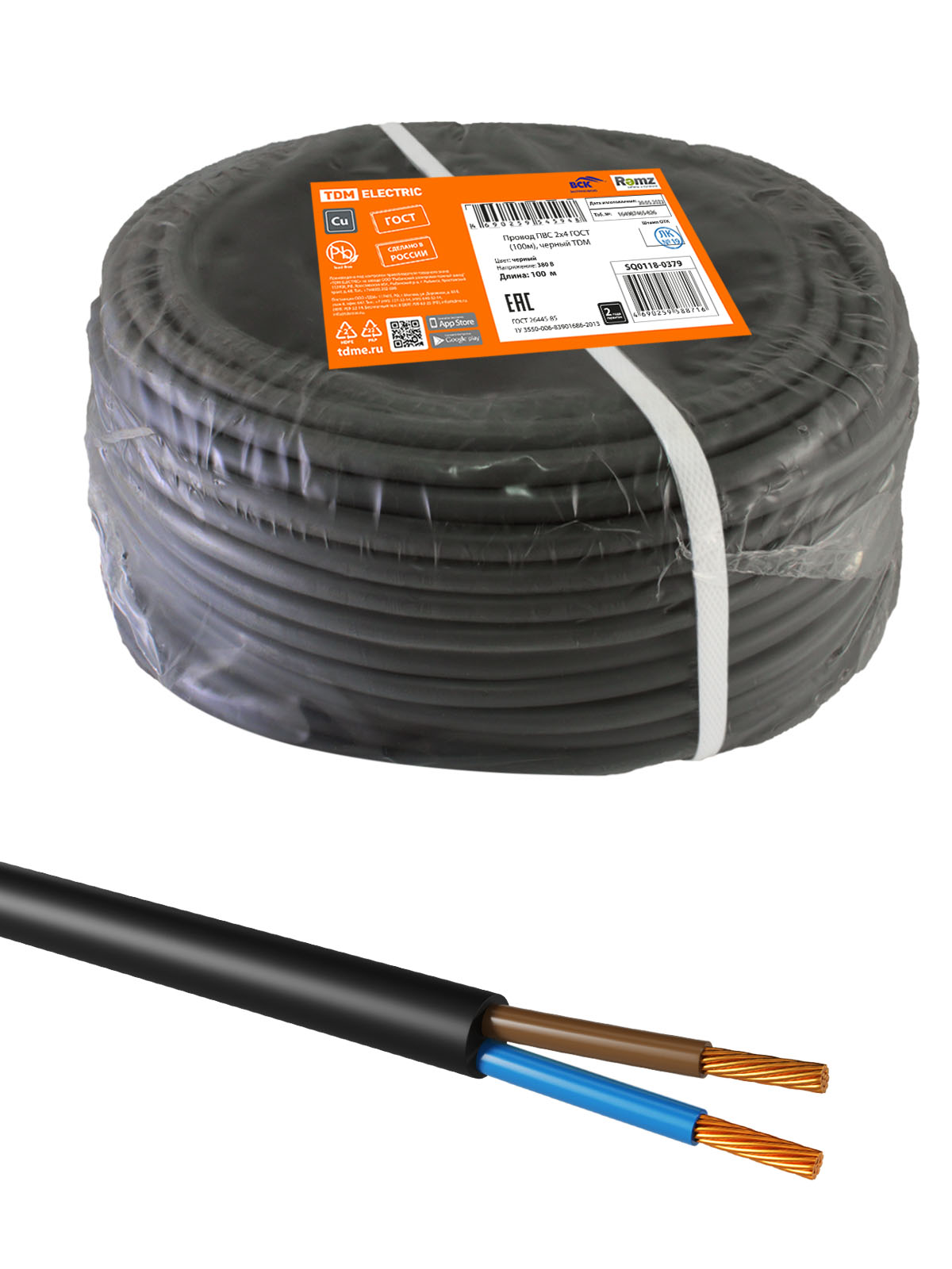 Наименование: Провод ПВС 2х4 ГОСТ (100м), черный TDM