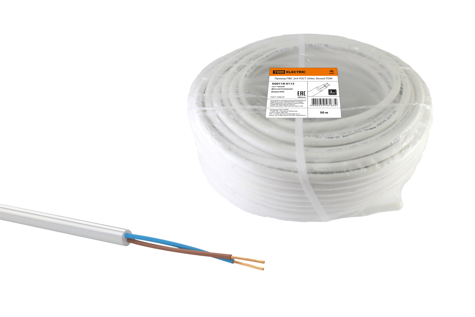 Провод ПВС 2х4 ГОСТ (50м), белый TDM