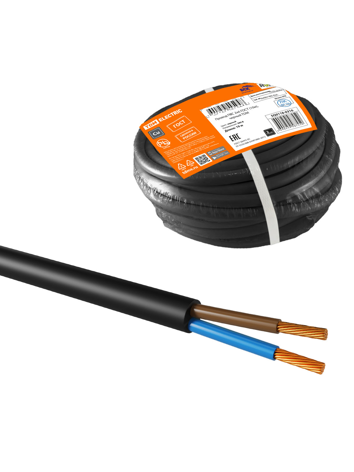 Наименование: Провод ПВС 2х6 ГОСТ (10м), черный TDM