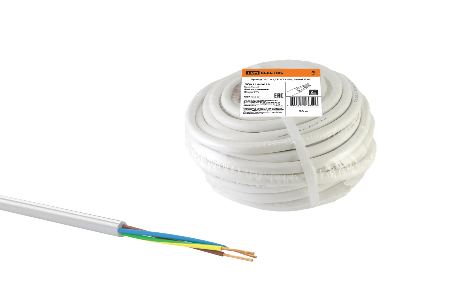 Наименование: Провод ПВС 3х1,5 ГОСТ (20м), белый TDM