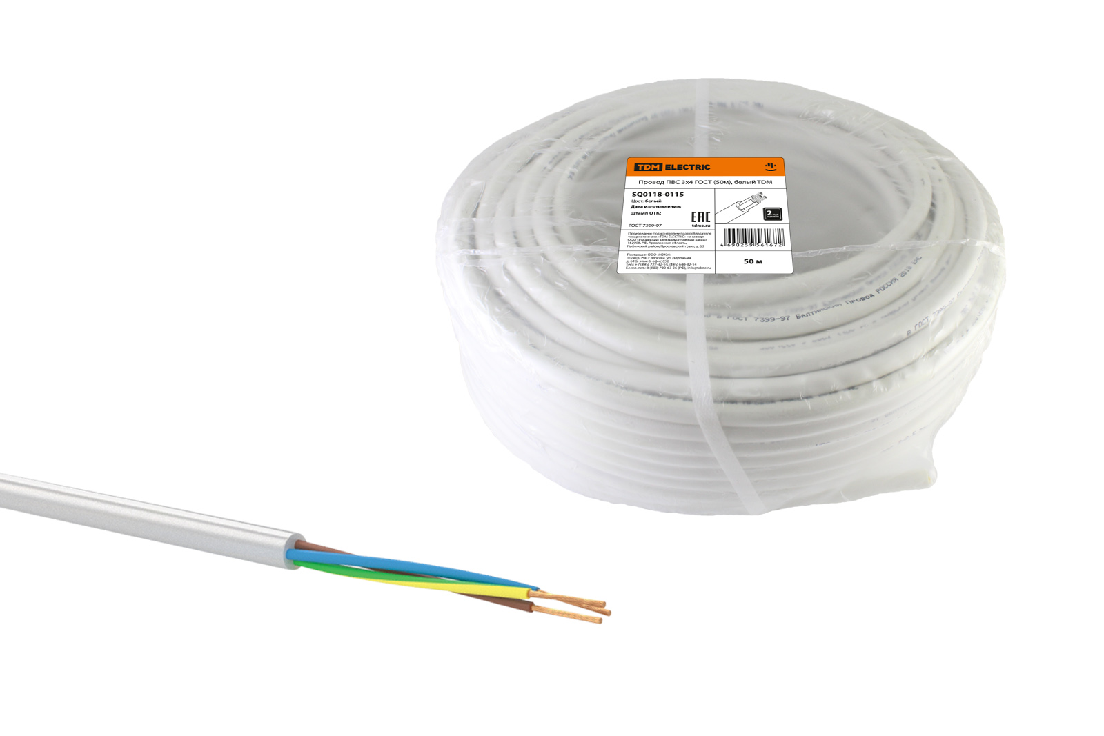 Наименование: Провод ПВС 3х4 ГОСТ (50м), белый TDM