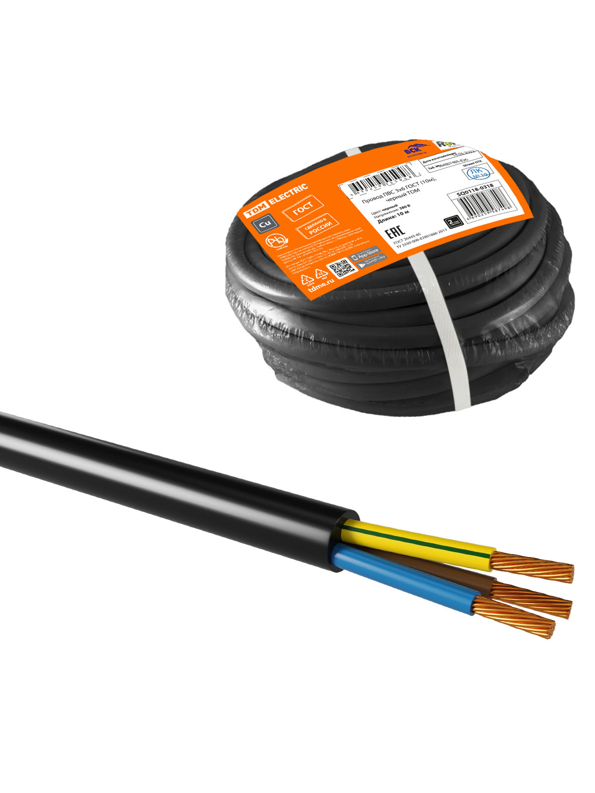 Наименование: Провод ПВС 3х6 ГОСТ (10м), черный TDM
