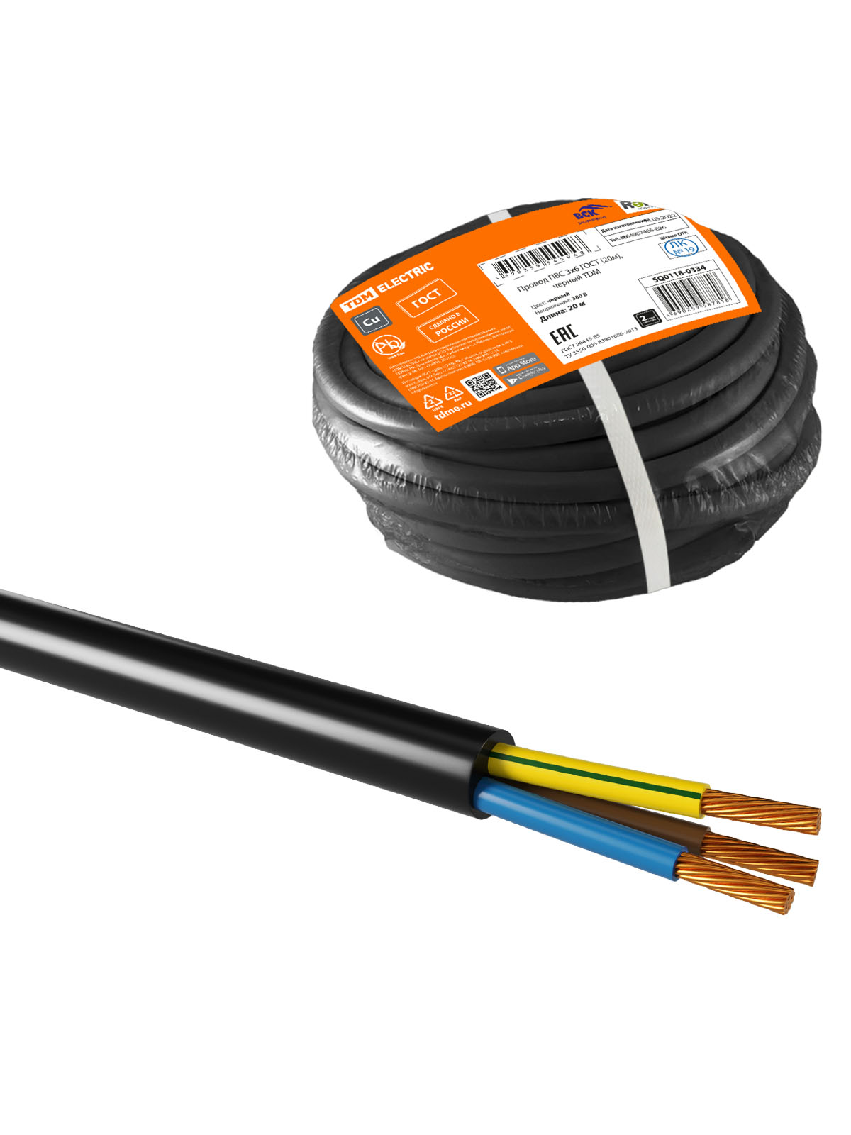 Наименование: Провод ПВС 3х6 ГОСТ (20м), черный TDM