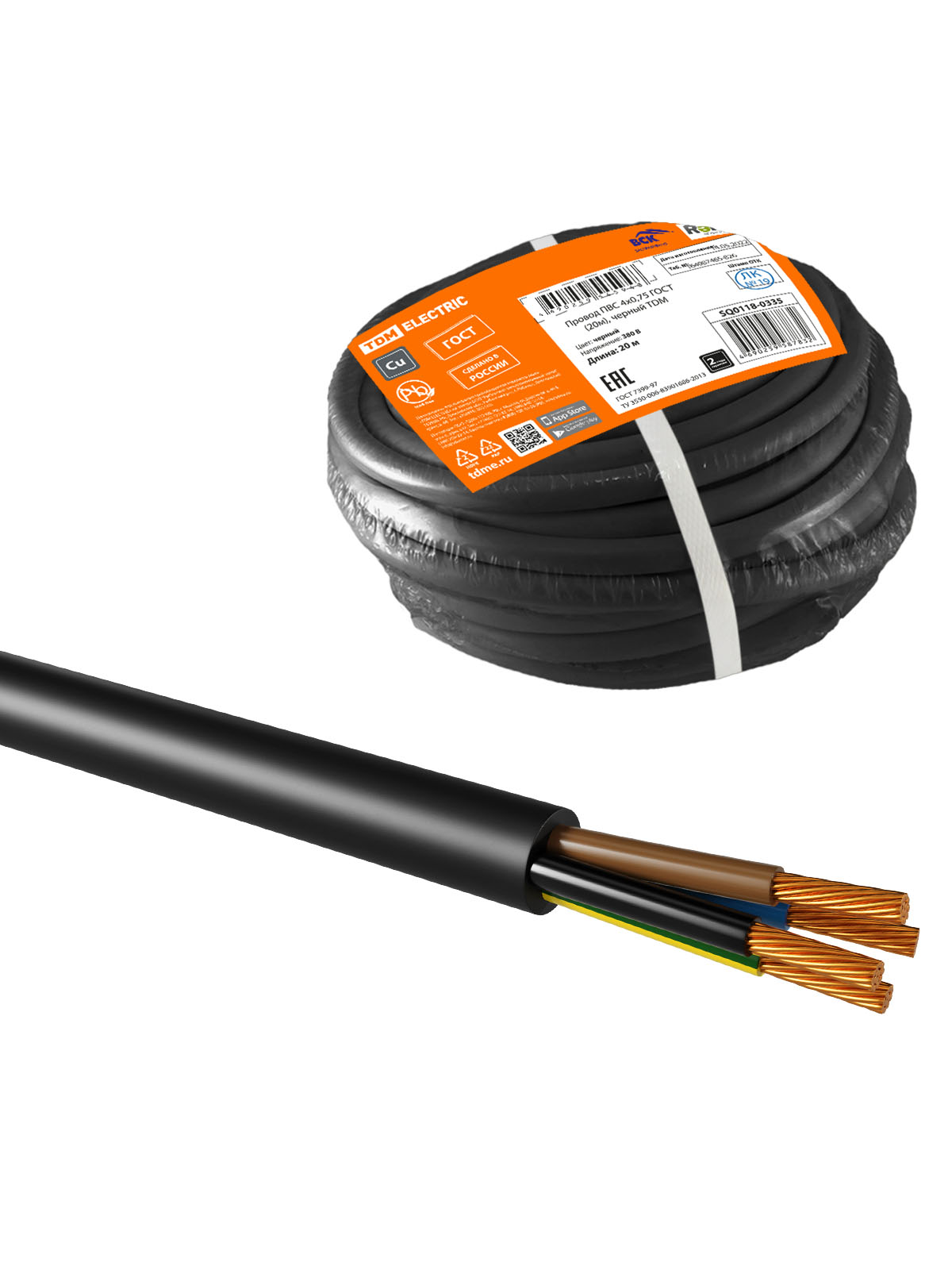 Наименование: Провод ПВС 4х0,75 ГОСТ (20м), черный TDM