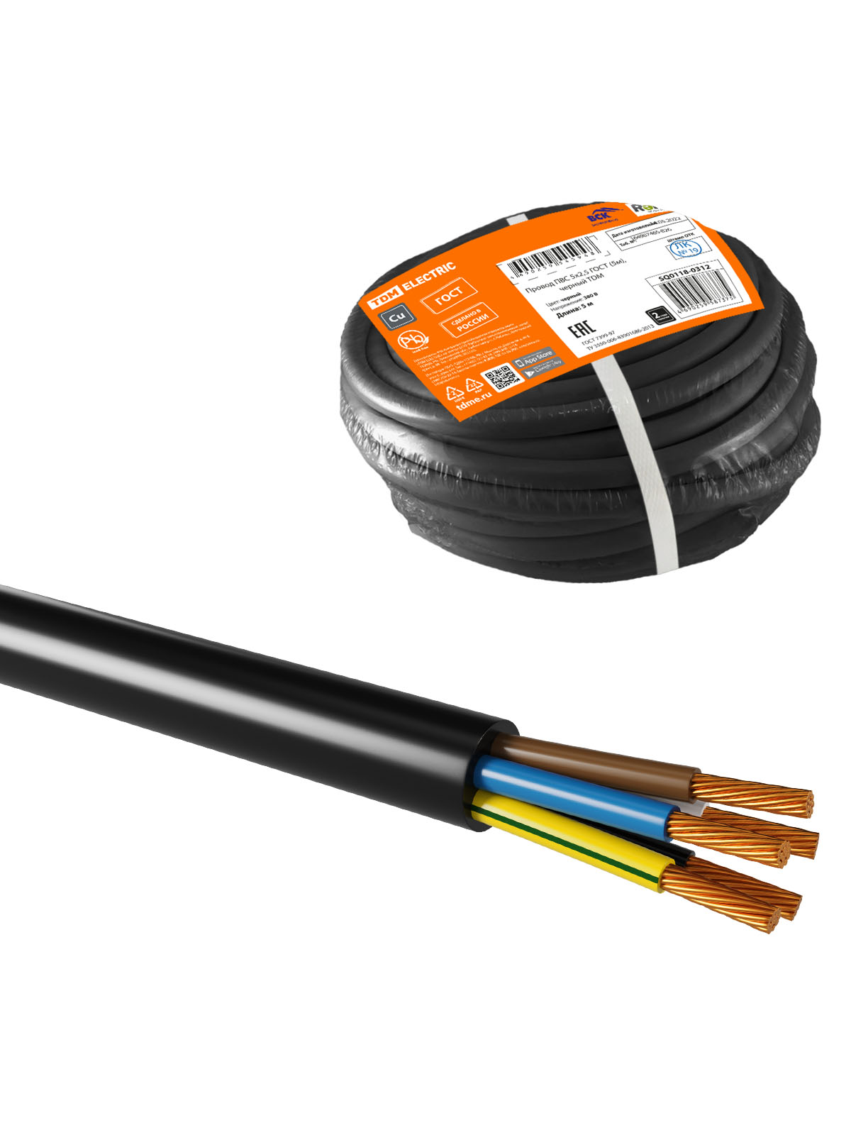 Провод ПВС 5х2,5 ГОСТ (5м), черный TDM