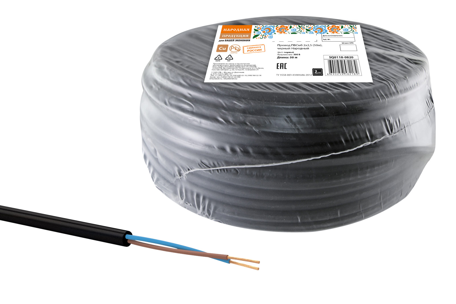 Провод ПВСмб 2х2,5 (50м), черный Народный