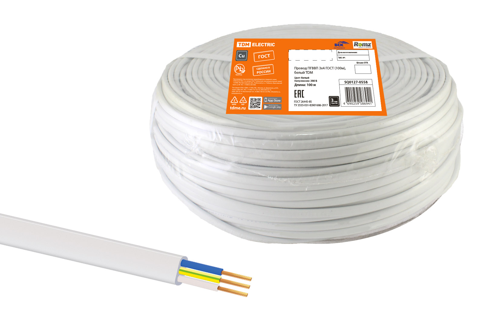 Провод ПГВВП 3х4 ГОСТ (100м), белый TDM