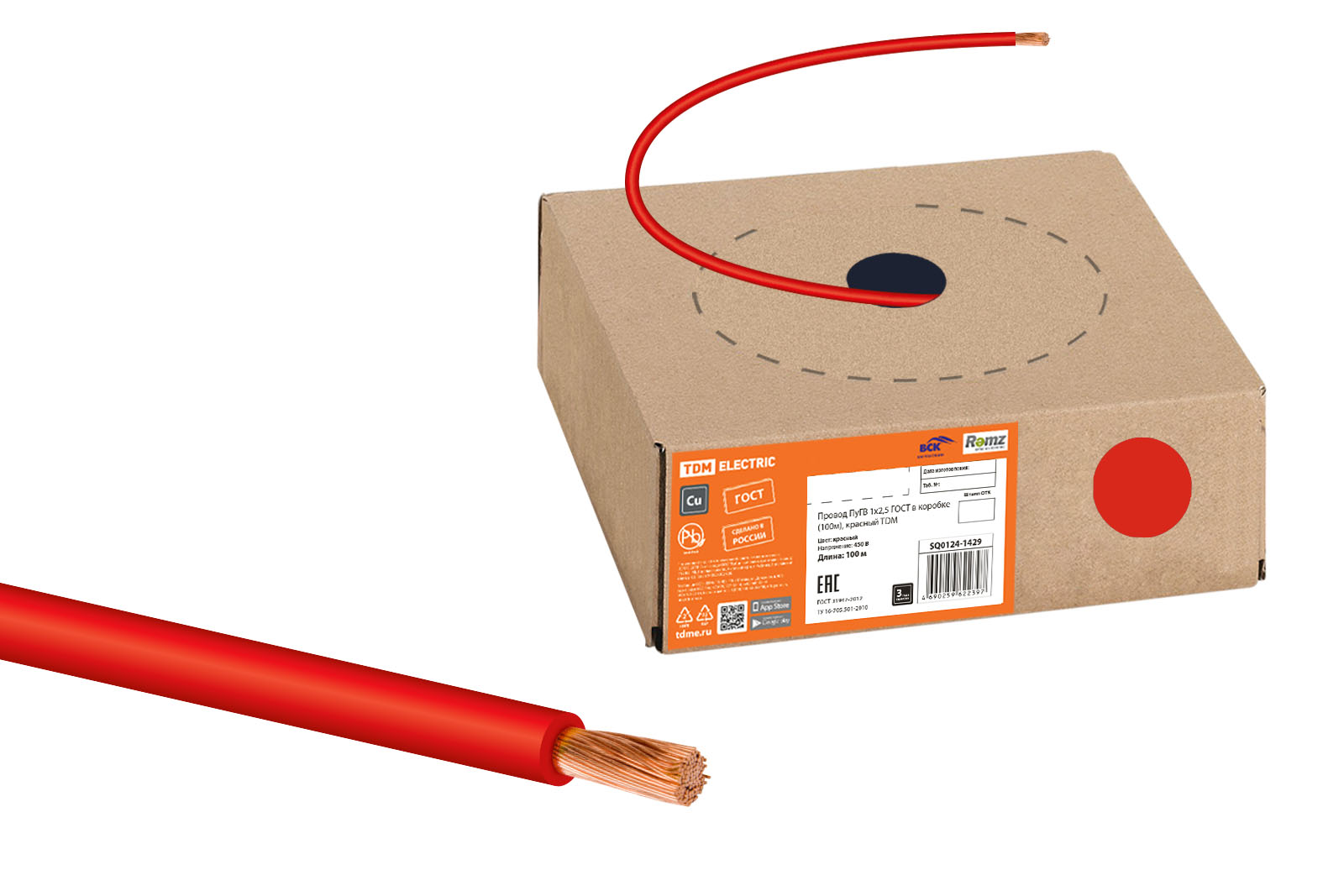 Наименование: Провод ПуГВ 1х2,5 ГОСТ в коробке (100м), красный TDM