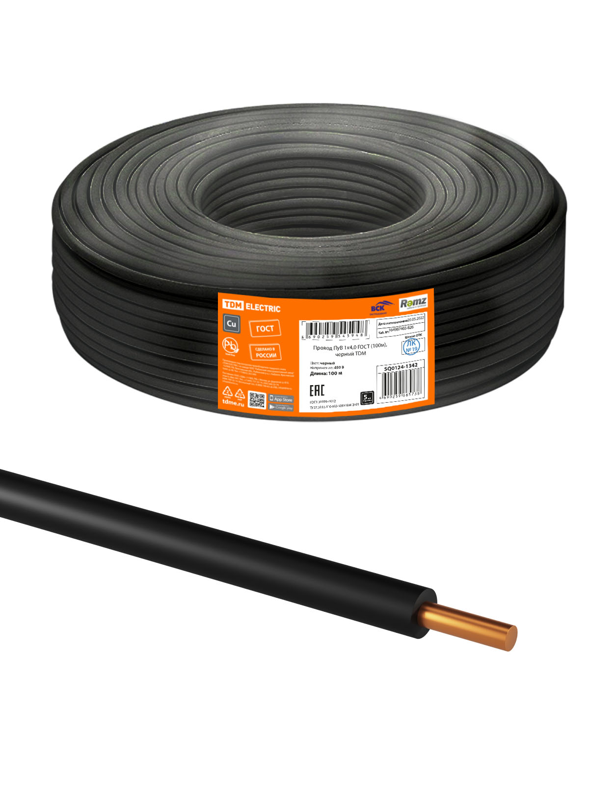 Наименование: Провод ПуВ 1х4,0 ГОСТ (100м), черный TDM