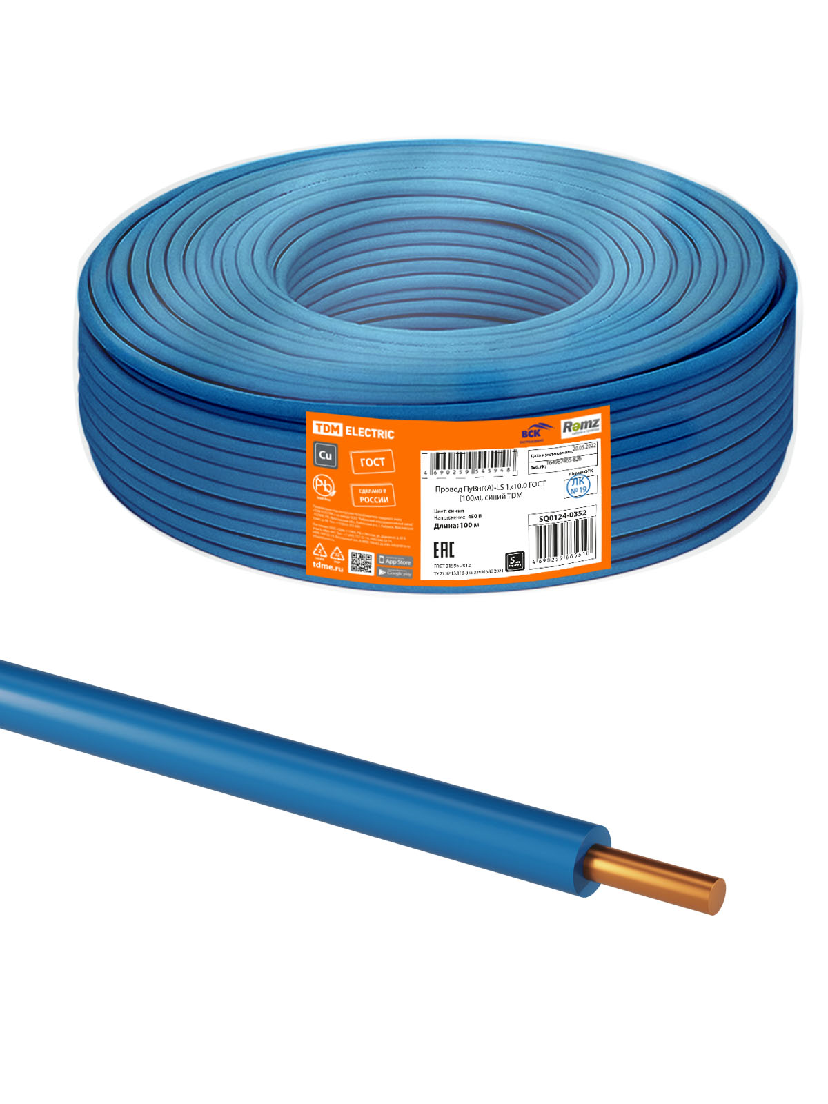 Наименование: Провод ПуВнг(А)-LS 1х10,0 ГОСТ (100м), синий TDM