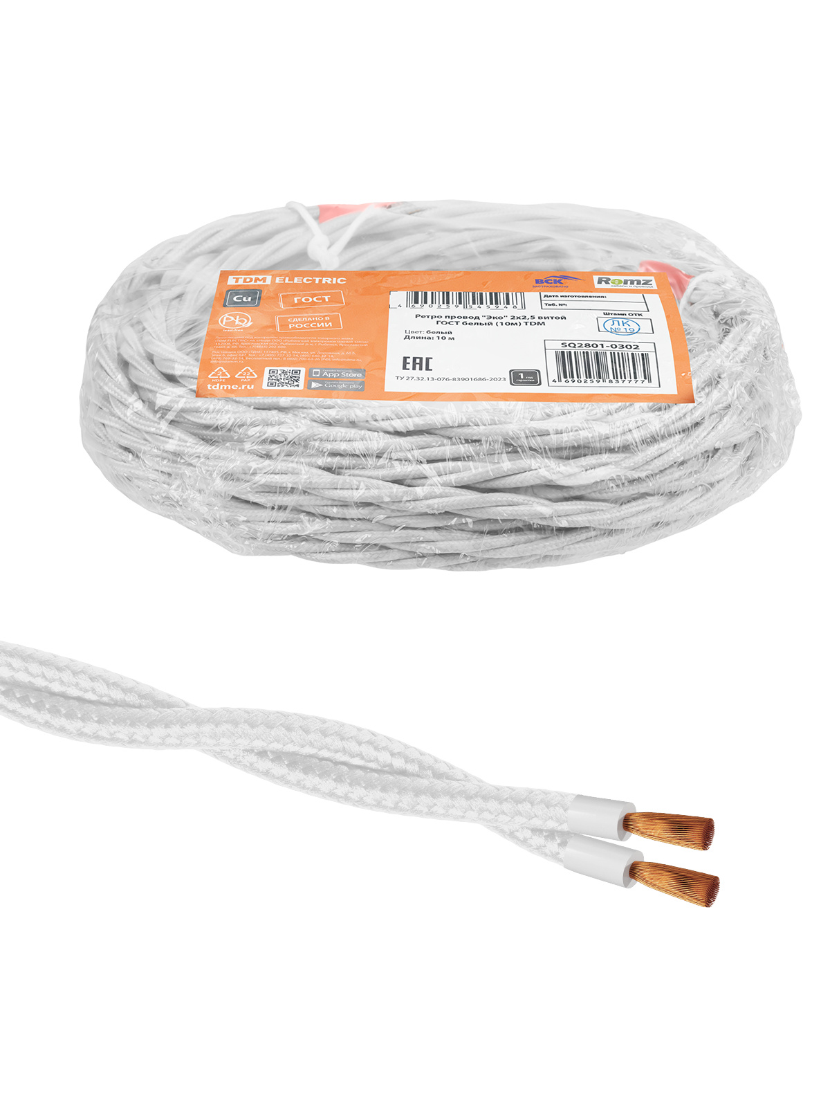Наименование: Ретро провод "Эко" 2х2,5 витой ГОСТ белый (10м) TDM