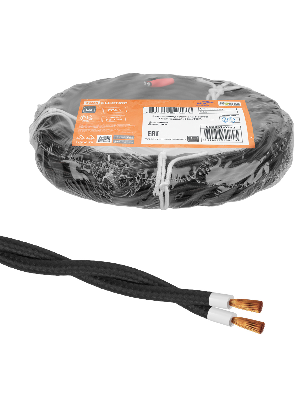 Ретро провод "Эко" 2х2,5 витой ГОСТ черный (10м) TDM