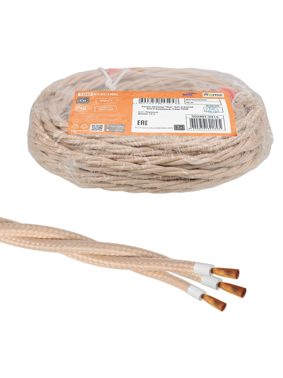 Наименование: Ретро провод "Эко" 3х1,5 витой ГОСТ бежевый (10м) TDM