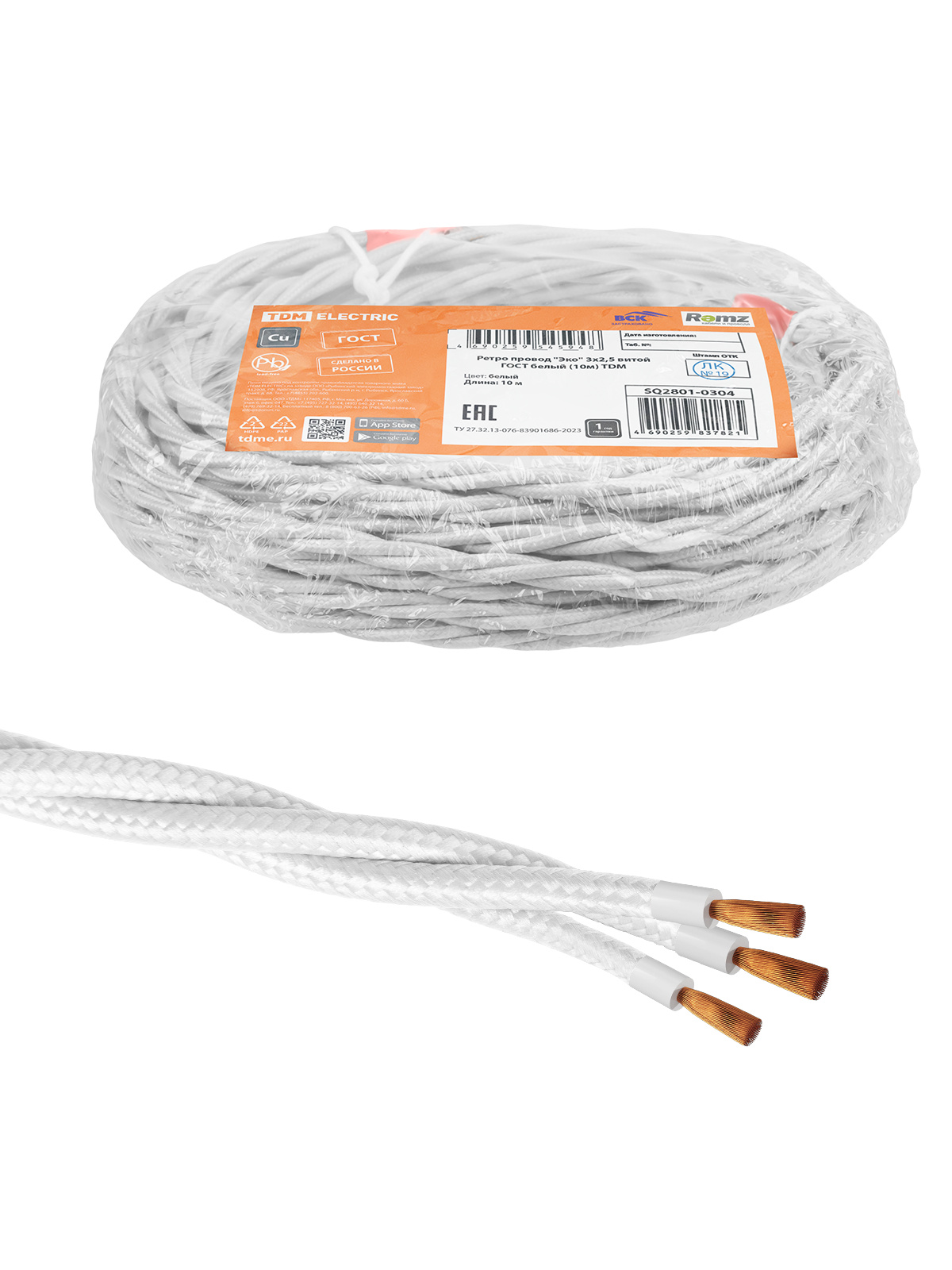 Ретро провод "Эко" 3х2,5 витой ГОСТ белый (10м) TDM