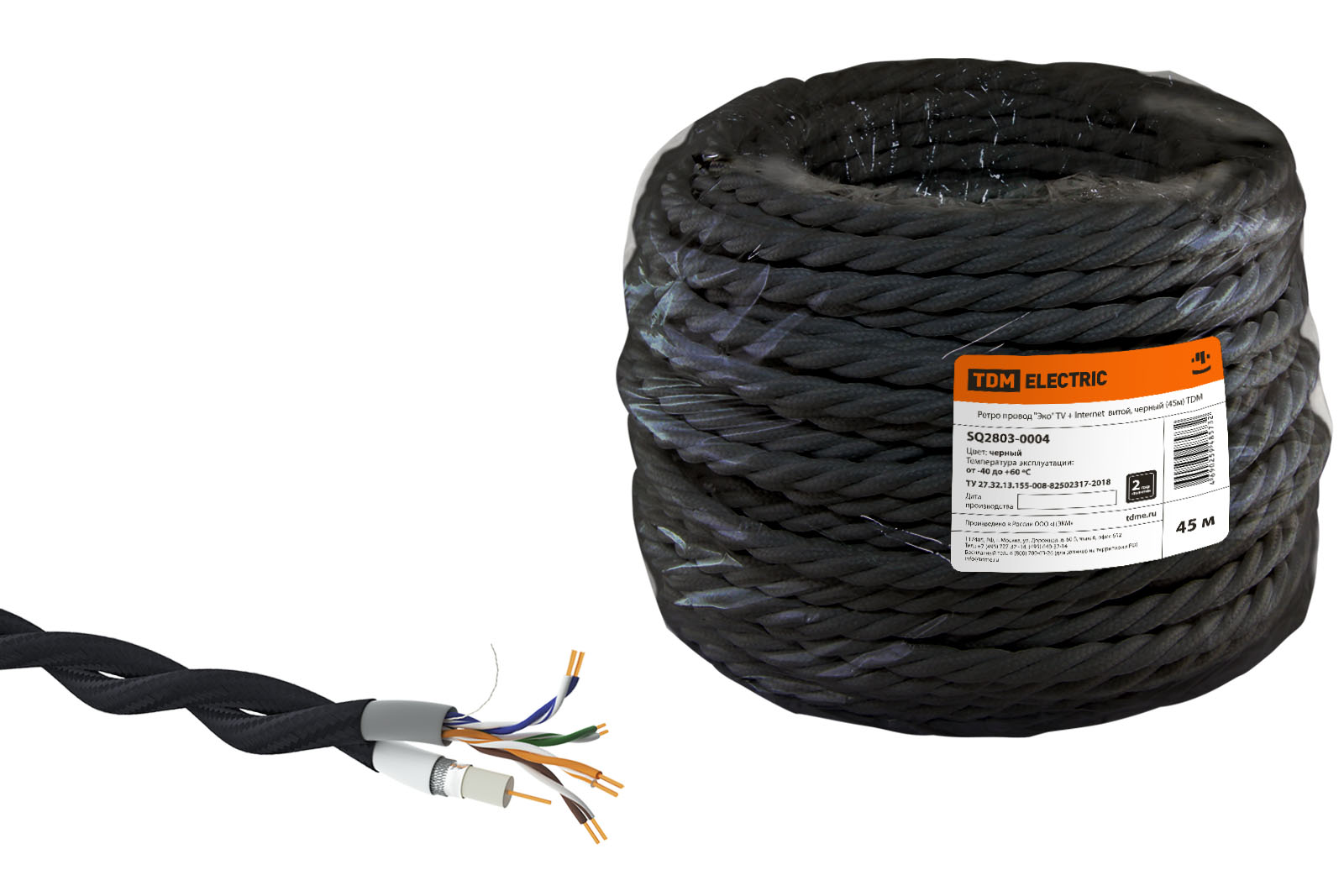Наименование: Ретро провод "Эко" TV + Internet витой, черный (45м) TDM