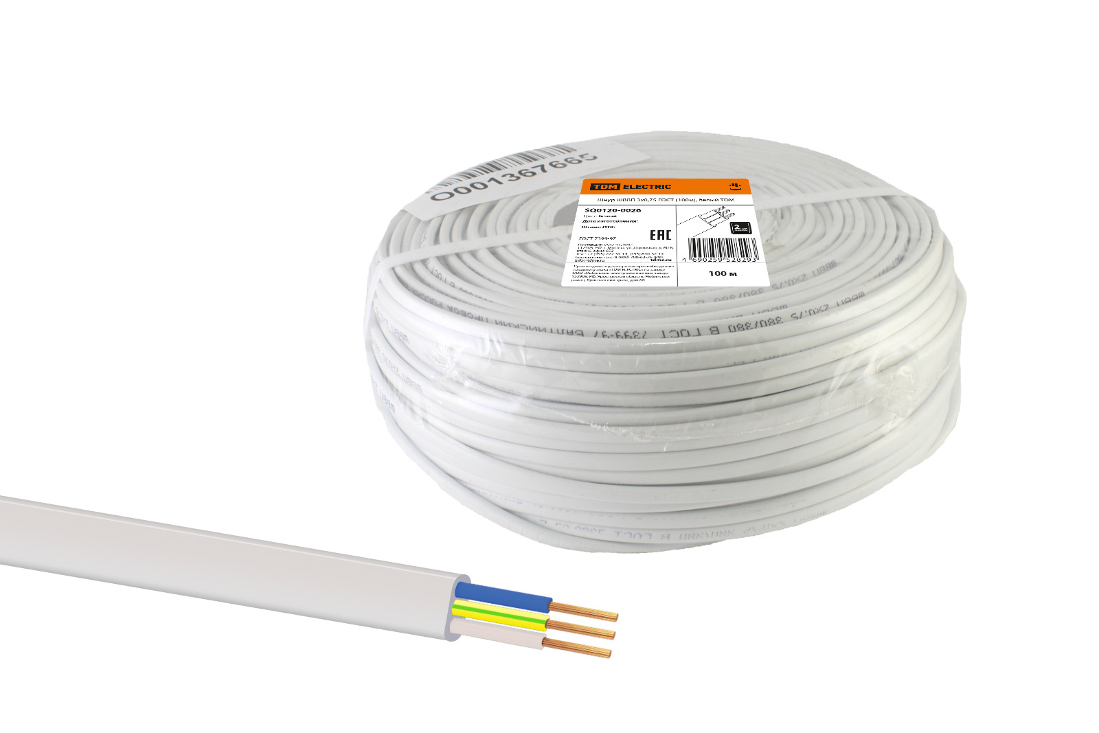 Наименование: Шнур ШВВП 3х0,75 ГОСТ (100м), белый TDM