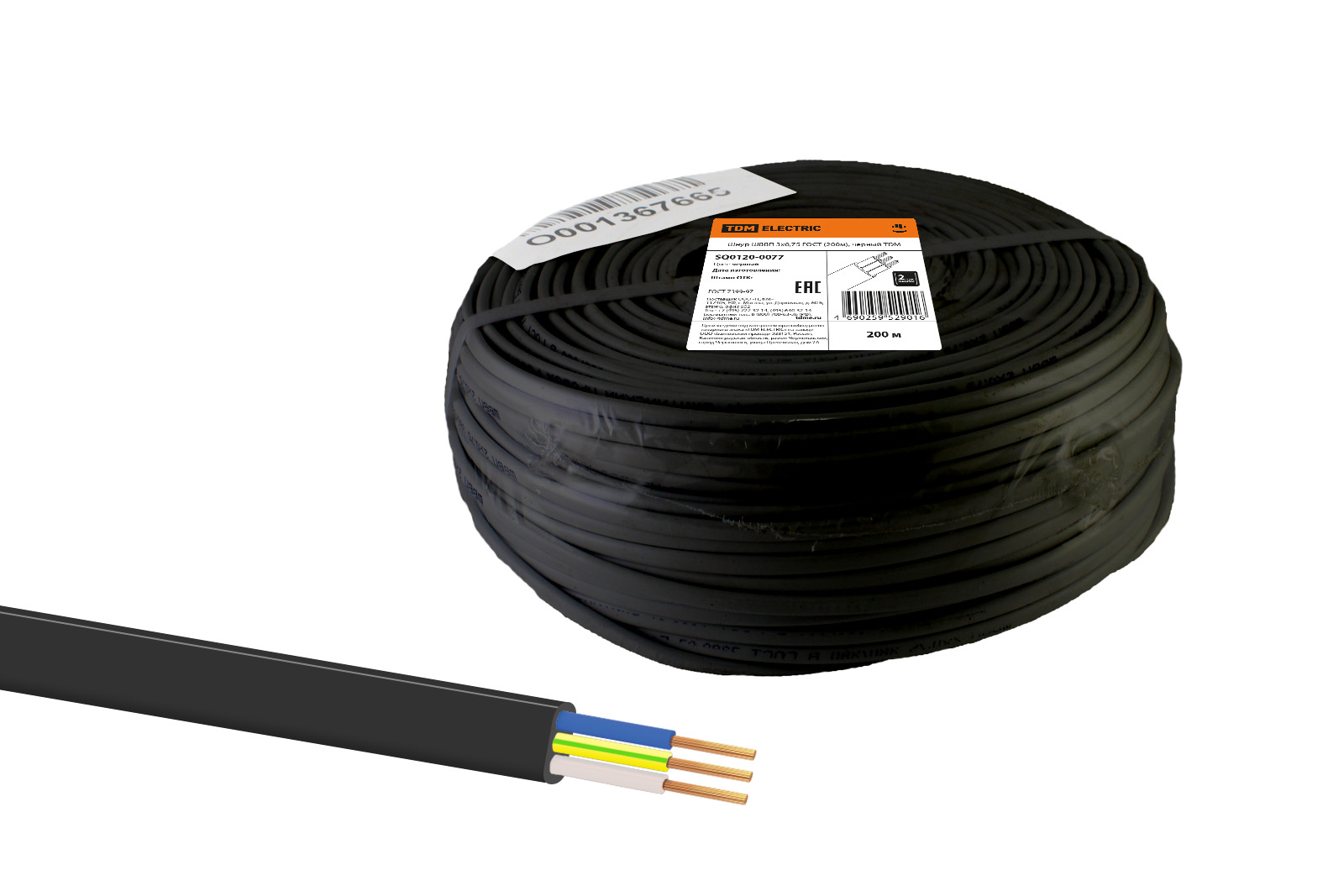 Наименование: Шнур ШВВП 3х0,75 ГОСТ (200м), черный TDM