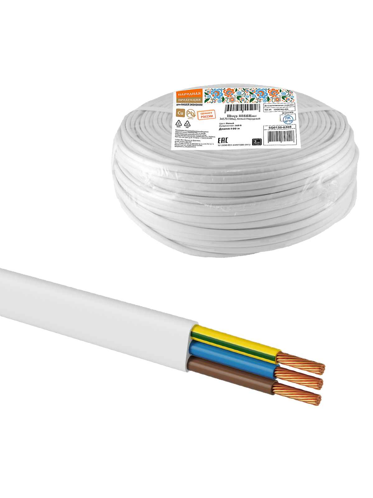 Наименование: Шнур ШВВПмб 3х0,75 (100м), белый Народный