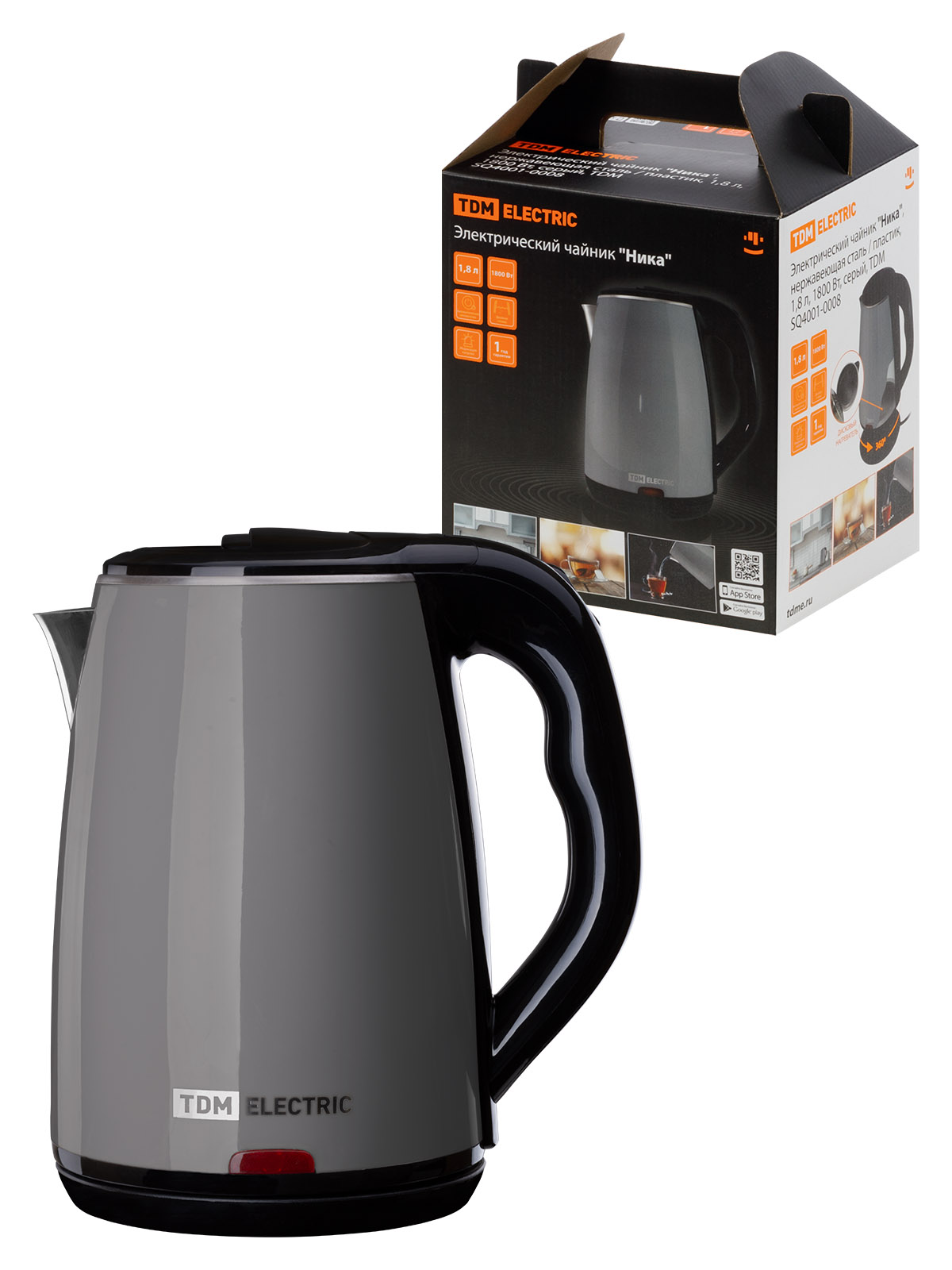 Наименование: Электрический чайник "Ника", нержавеющая сталь / пластик, 1,8 л, 1800 Вт, серый, TDM