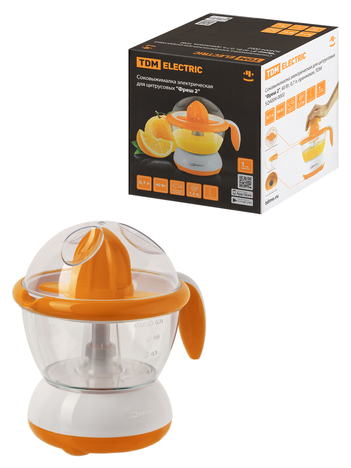Наименование: Соковыжималка электрическая для цитрусовых "Фреш 2", 40 Вт, 0,7 л, оранжевая, TDM