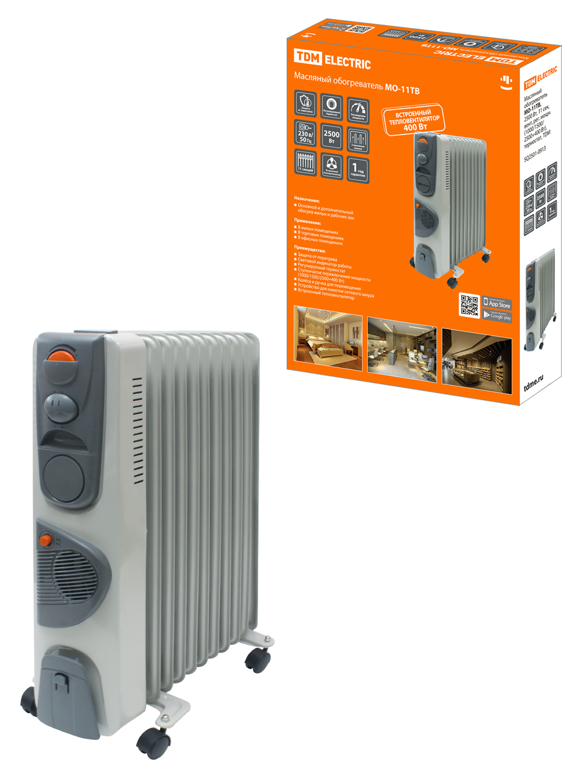 Наименование: Масл. обогрев. МО-11ТВ, 2500 Вт, 11 сек, вент, рег. мощн. (1000/1500/2500+400 Вт), термостат, TDM