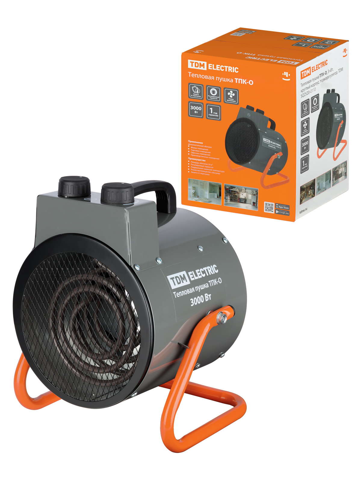 Наименование: Тепловая пушка ТПК-О, 3 кВт, круглый корпус, терморегулятор, TDM