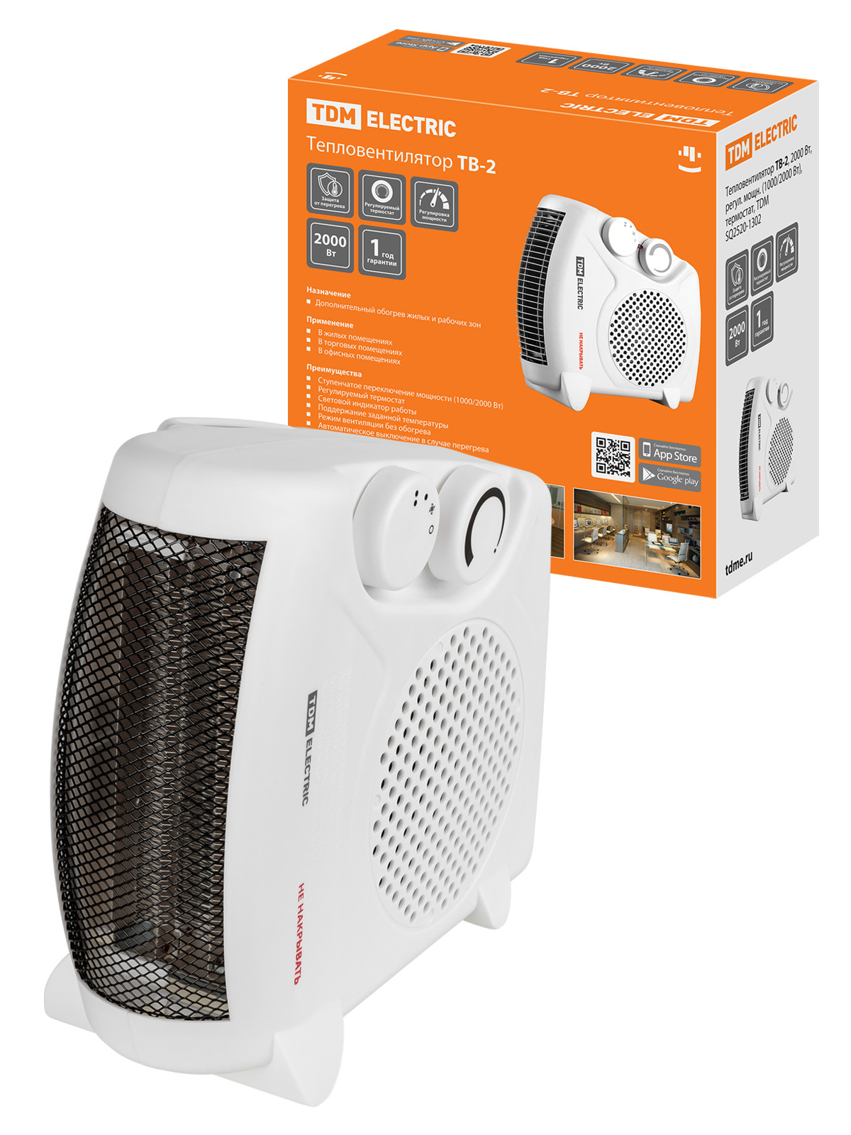 Наименование: Тепловентилятор ТВ-2, 2000 Вт, регул. мощн. (1000/2000 Вт), термостат, TDM