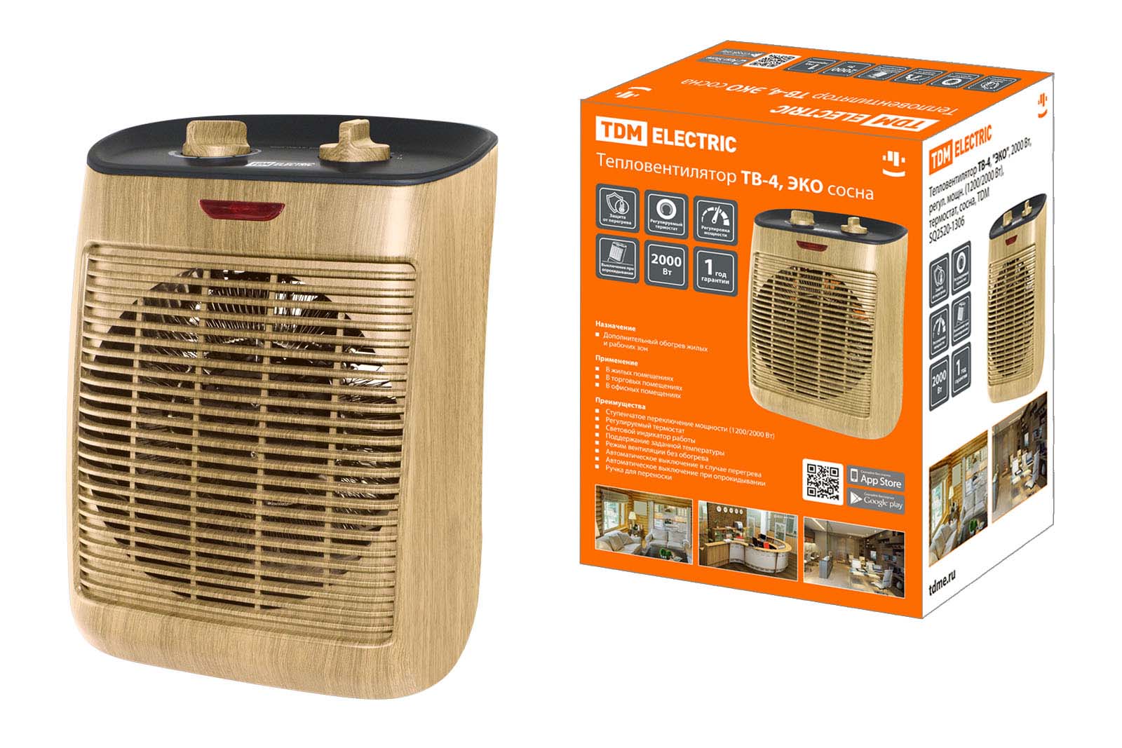 Наименование: Тепловентилятор ТВ-4, "ЭКО", 2000 Вт, регул. мощн. (1200/2000 Вт), термостат, сосна, TDM