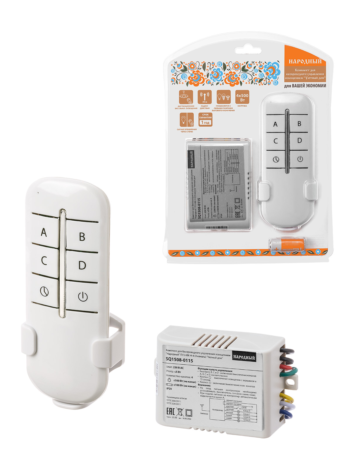 Наименование: Комплект для беспроводного управления освещением "Народный" ПУ3-МK-Н-4 (4 канала) "Уютный дом"