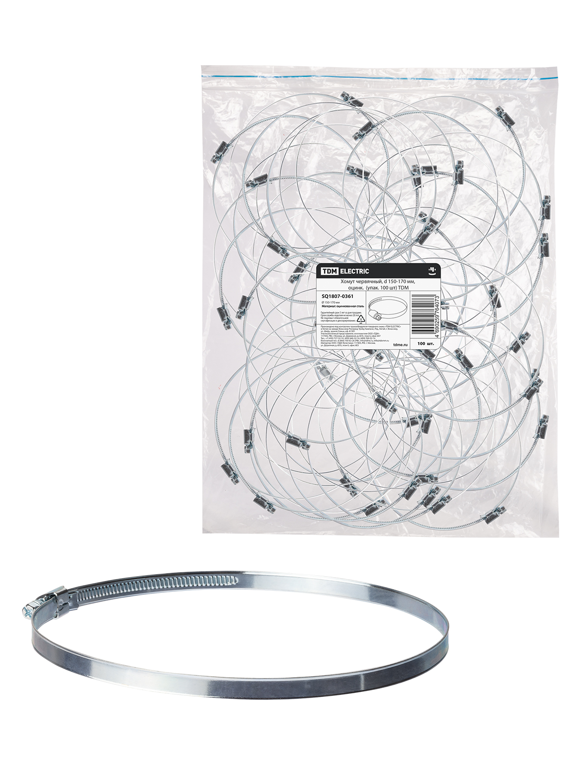Наименование: Хомут червячный, d 150-170 мм, оцинк (упак. 100 шт) TDM