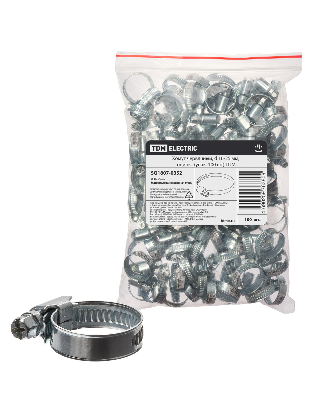 Наименование: Хомут червячный, d 16-25 мм, оцинк (упак. 100 шт) TDM