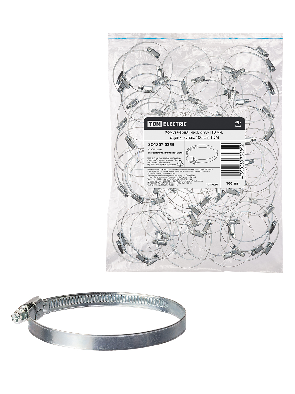 Наименование: Хомут червячный, d 90-110 мм, оцинк (упак. 100 шт) TDM