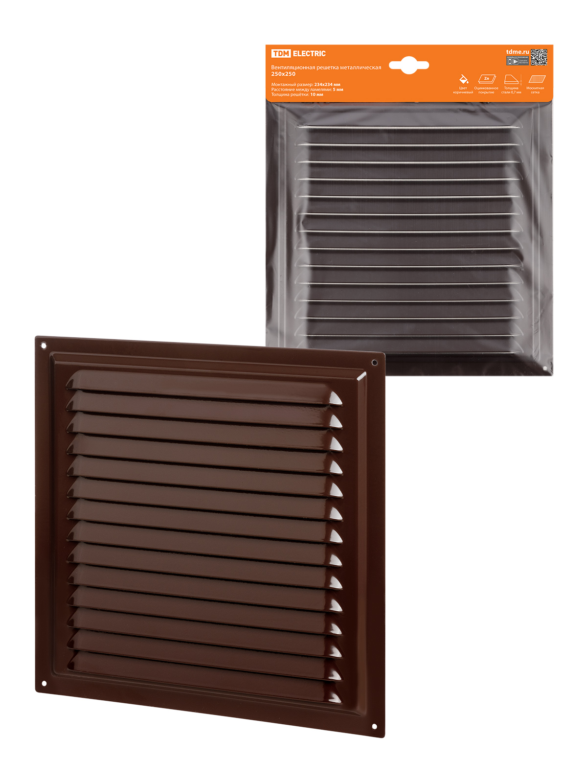 Наименование: Решетка металл. 250х250, коричневая, с покрытием полимерной эмалью TDM