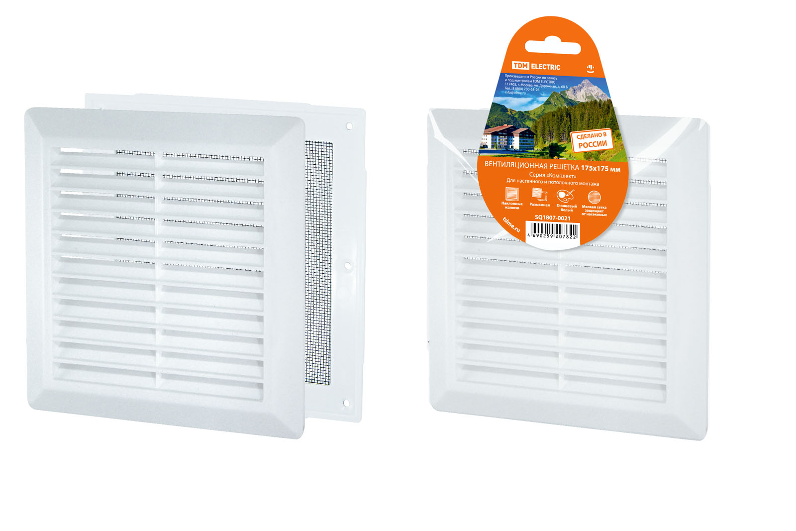 Наименование: Решетка разъемная с москитной сеткой, наклонные жалюзи, 175х175 TDM