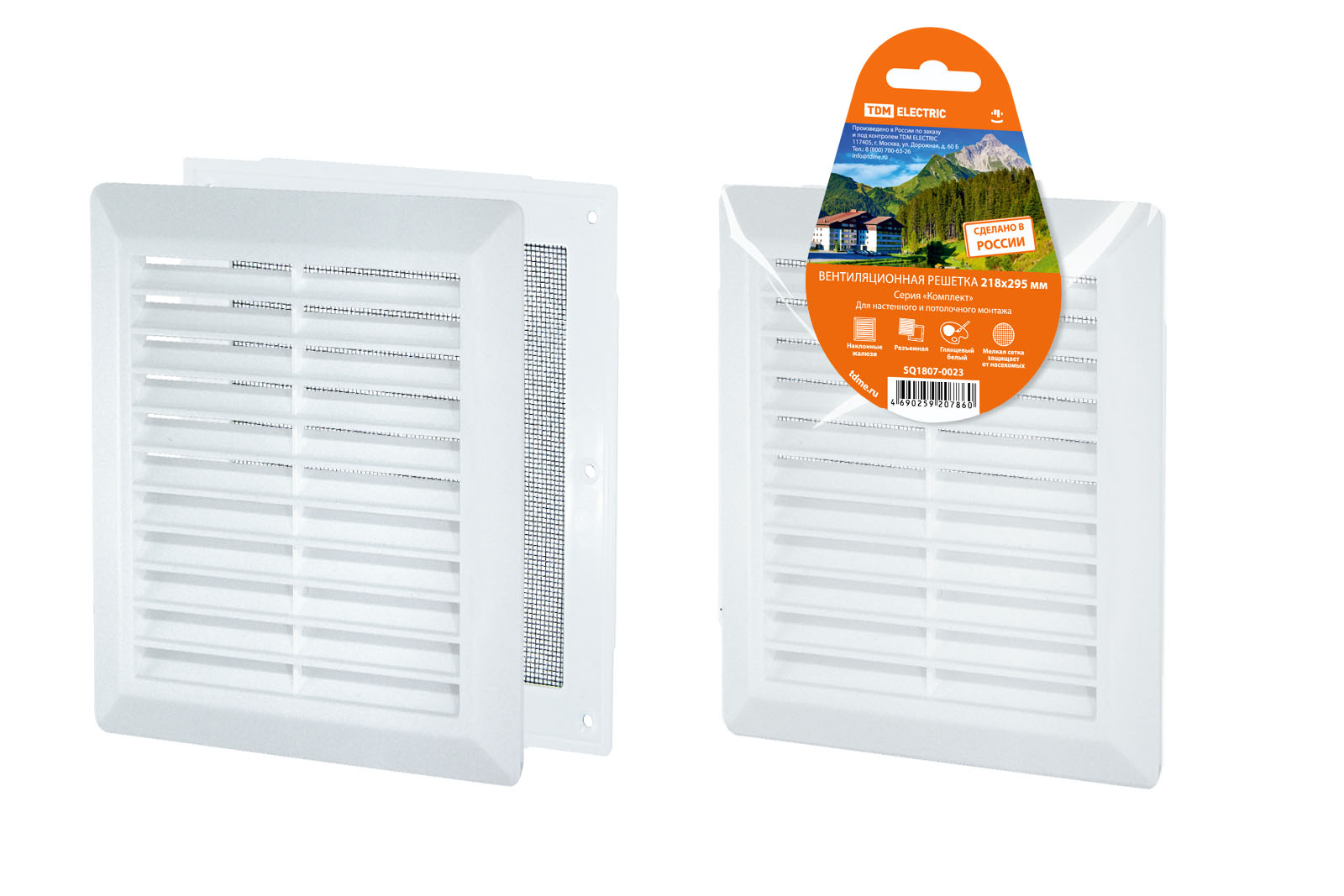 Решетка разъемная с москитной сеткой, наклонные жалюзи, 218х295 TDM