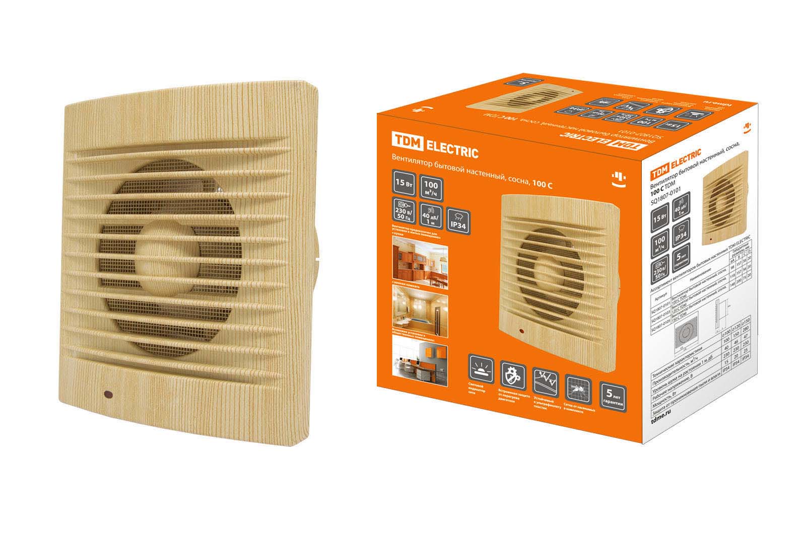 Наименование: Вентилятор бытовой настенный, 100 С "ЭКО" (сосна) TDM