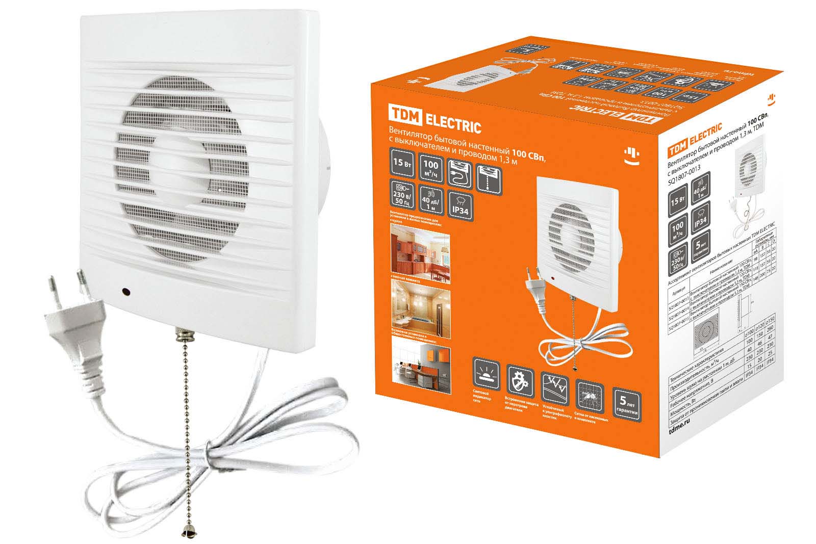 Наименование: Вентилятор бытовой настенный 100 СВп, с выключателем и проводом 1,3 м, TDM