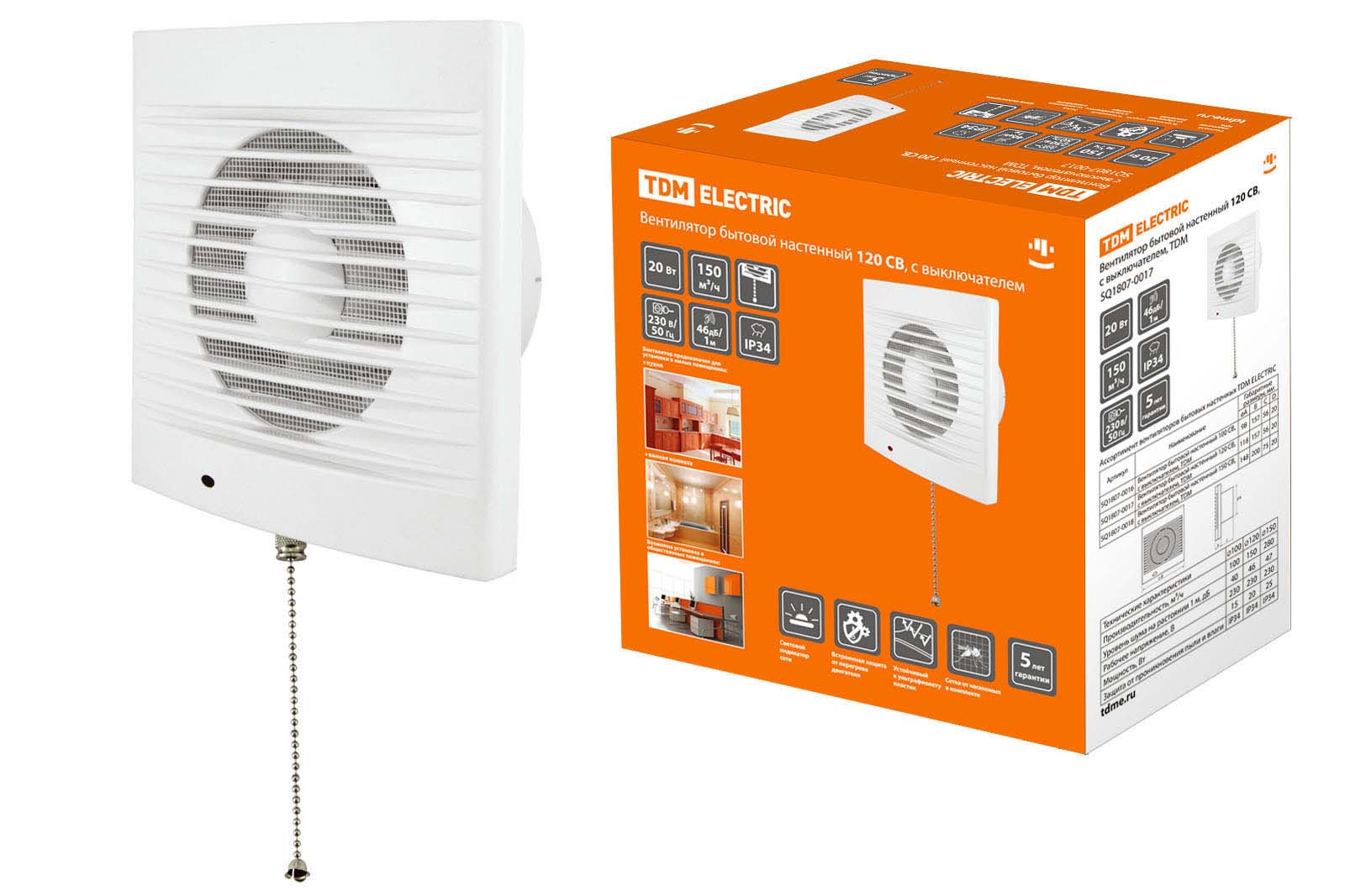 Наименование: Вентилятор бытовой настенный 120 СВ, с выключателем, TDM
