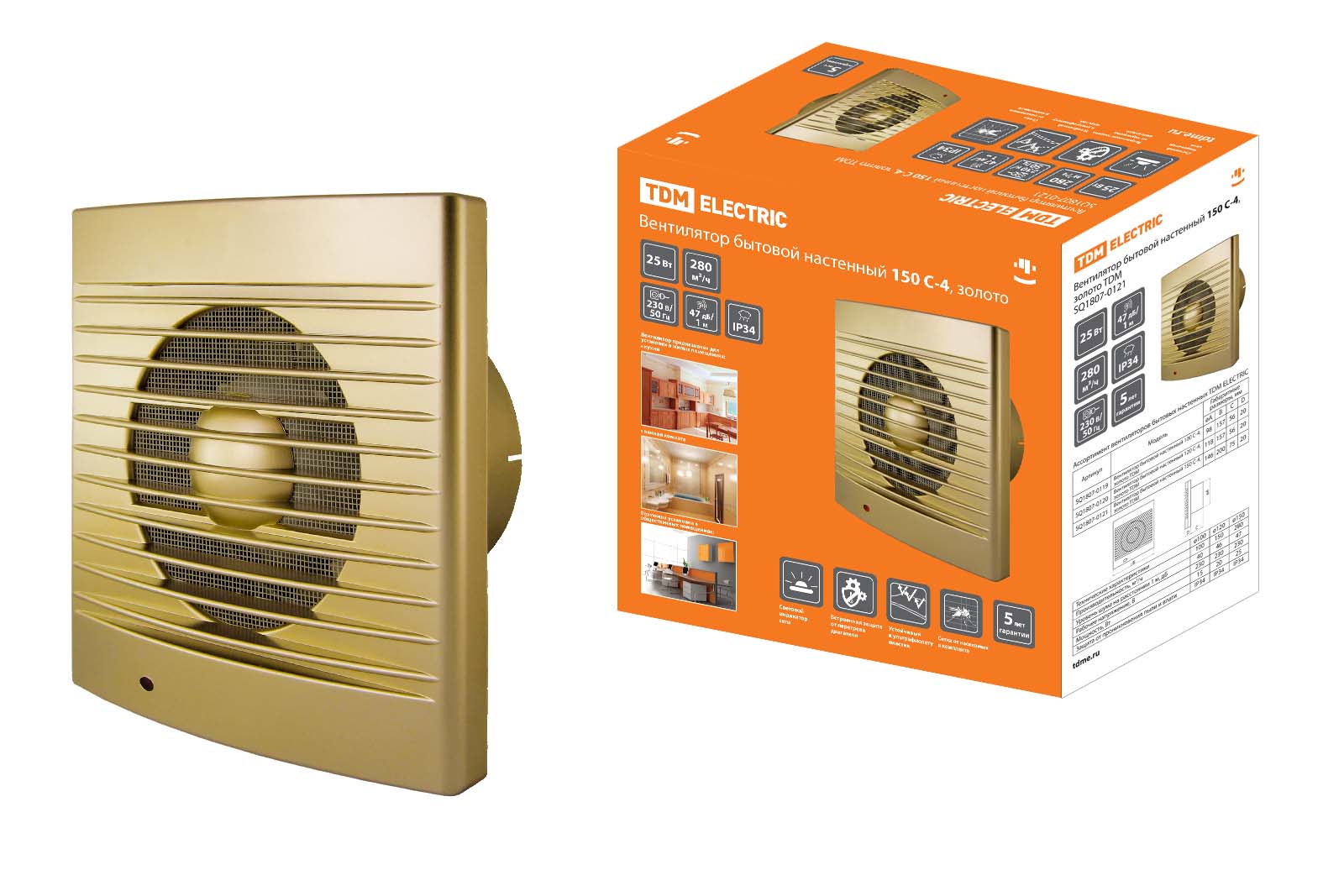 Наименование: Вентилятор бытовой настенный 150 С-4, золото TDM