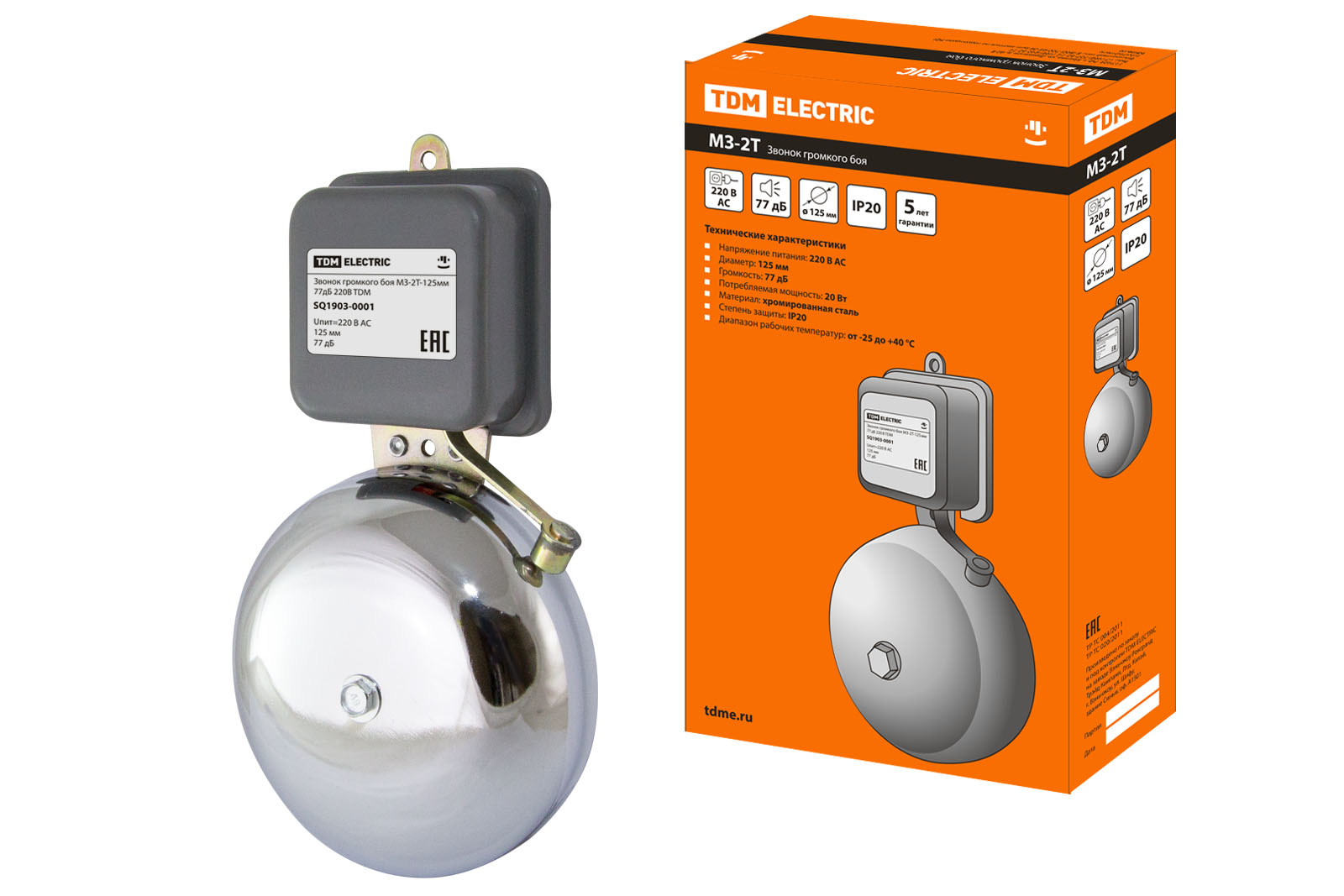 Наименование: Звонок громкого боя МЗ-2Т-125мм 77дБ 220В TDM