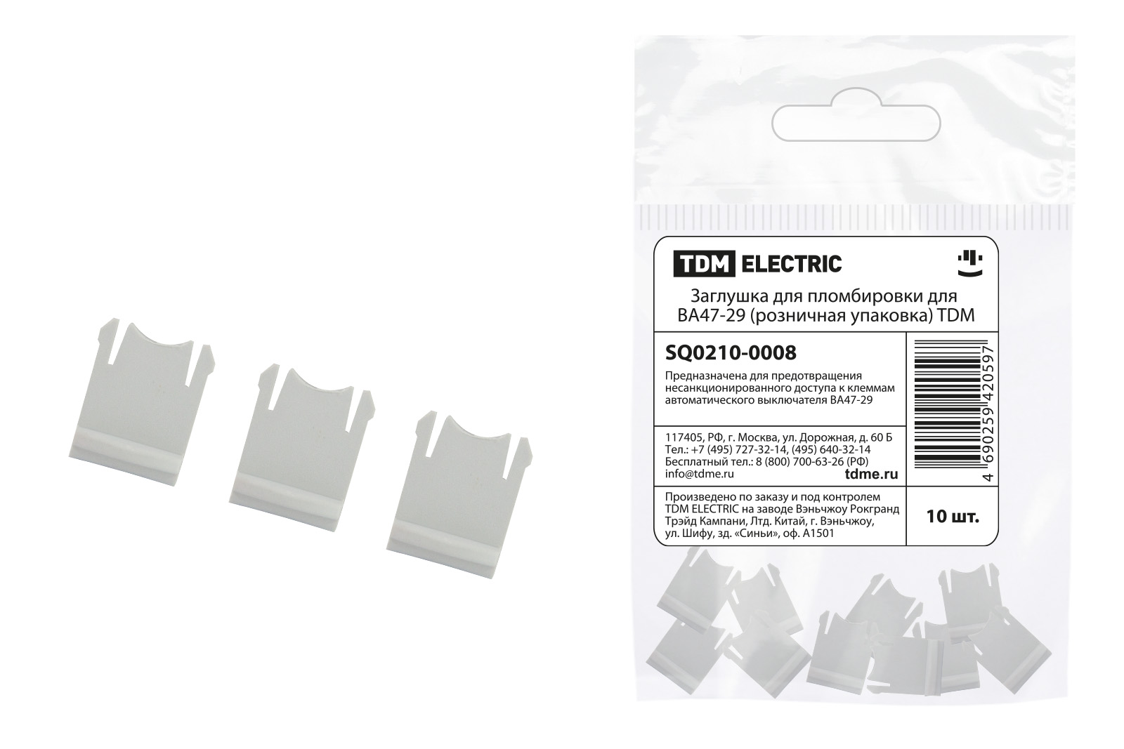 Наименование: Заглушка для пломбировки для ВА47-29 (розничная упаковка) TDM