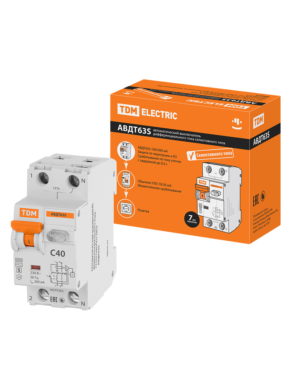 Наименование: АВДТ 63S 2P(1P+N) C50 100мА 6кА тип АС TDM