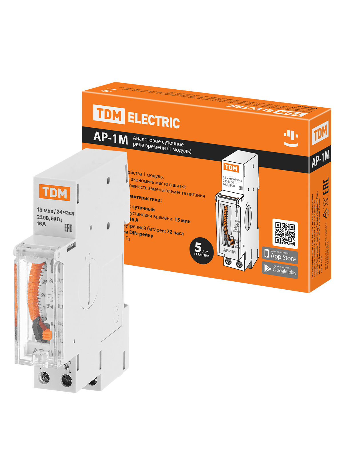 Наименование: Аналоговое суточное реле АР-1М-15мин/24ч-16А-DIN (1 модуль) TDM