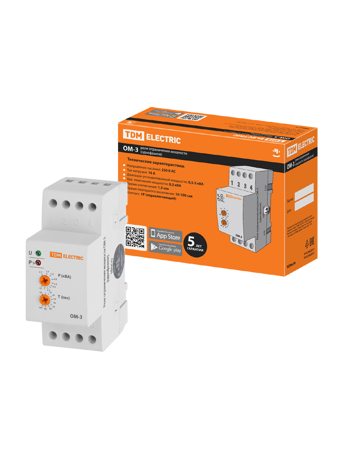 Наименование: Реле ограничения мощности ОМ-3 0,5/5-01 (1ф, 0,5-5кВА) TDM