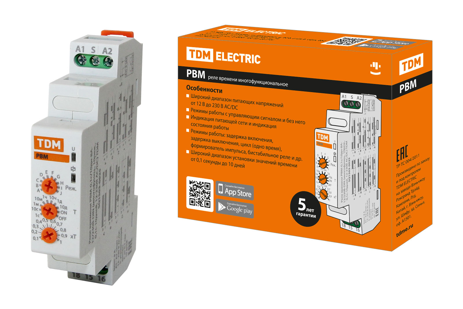 Наименование: Реле времени РВМ-0,1с/10дн-8А-12/230В-DIN (многофункц., 10реж., 0,1с-10дней, 12-230В AC/DC) TDM