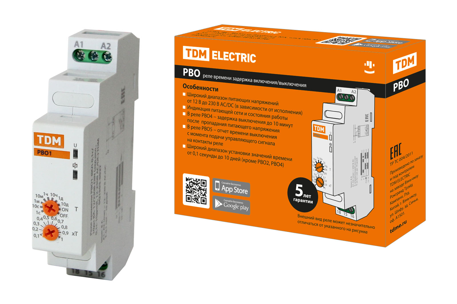 Наименование: Реле времени РВО1-ВКЛ-0,1с/10дн-8А-12/230В-DIN (зад.вкл., 0,1с-10дней, 12-230В AC/DC) TDM