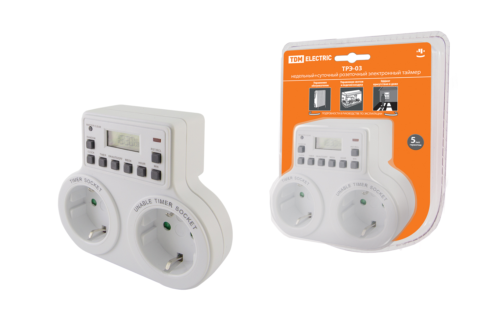 Наименование: Таймер розеточный ТРЭ-03-1мин/7дн-10on/off-2х8А-2р (недельный, 2 розетки) TDM