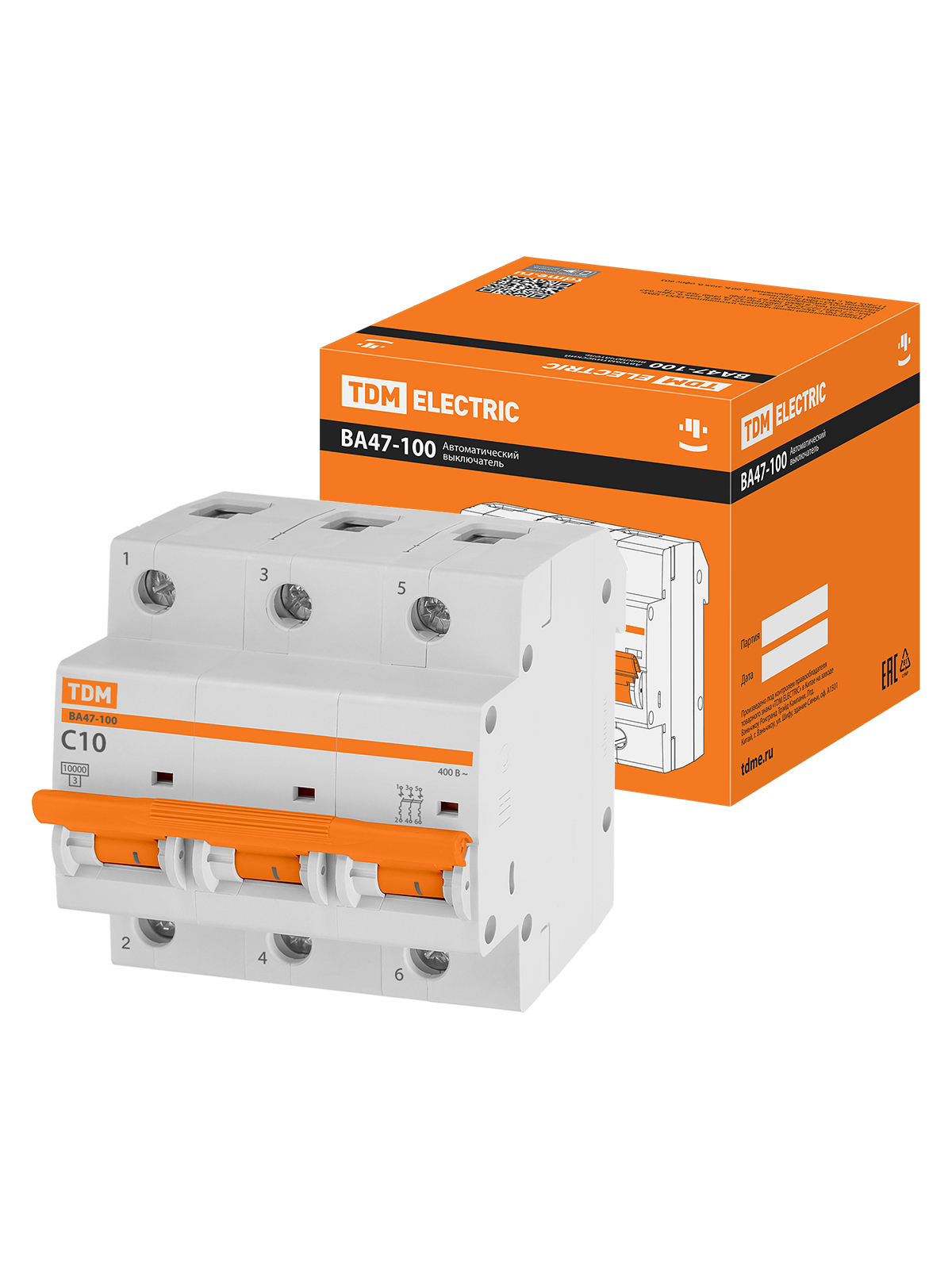 Наименование: Авт. выкл. ВА47-100 3Р 10А 10кА х-ка С TDM