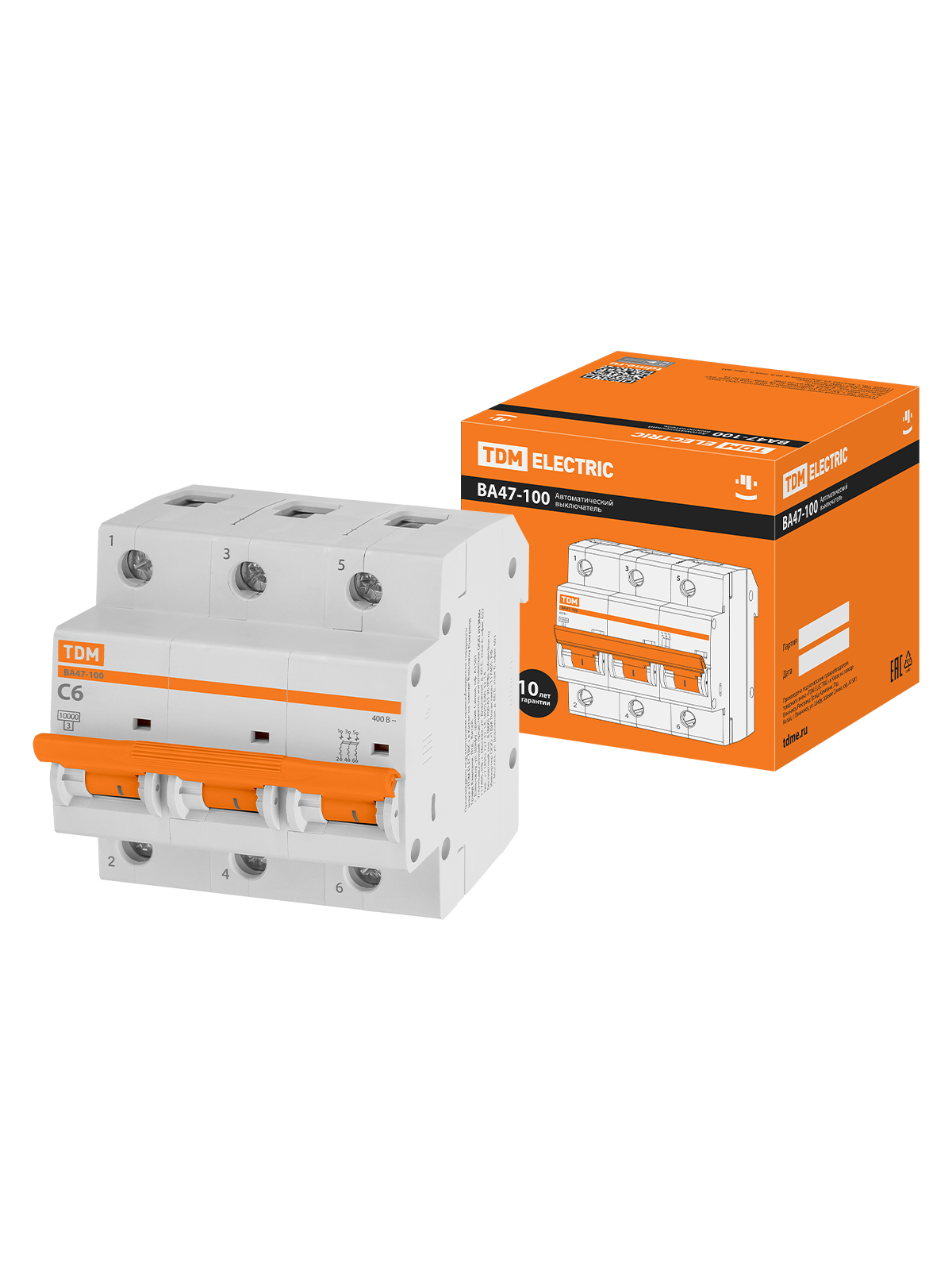 Наименование: Авт. выкл. ВА47-100 3Р 6А 10кА х-ка С TDM